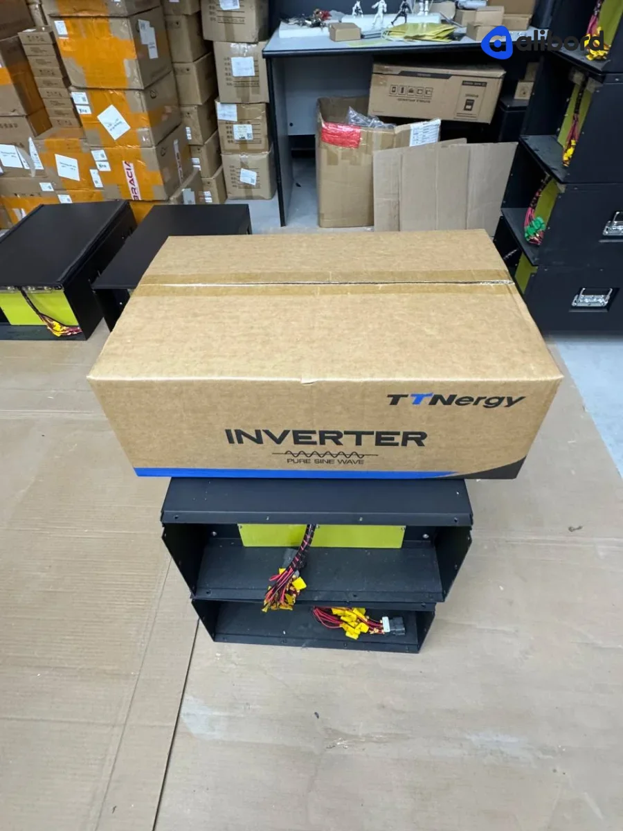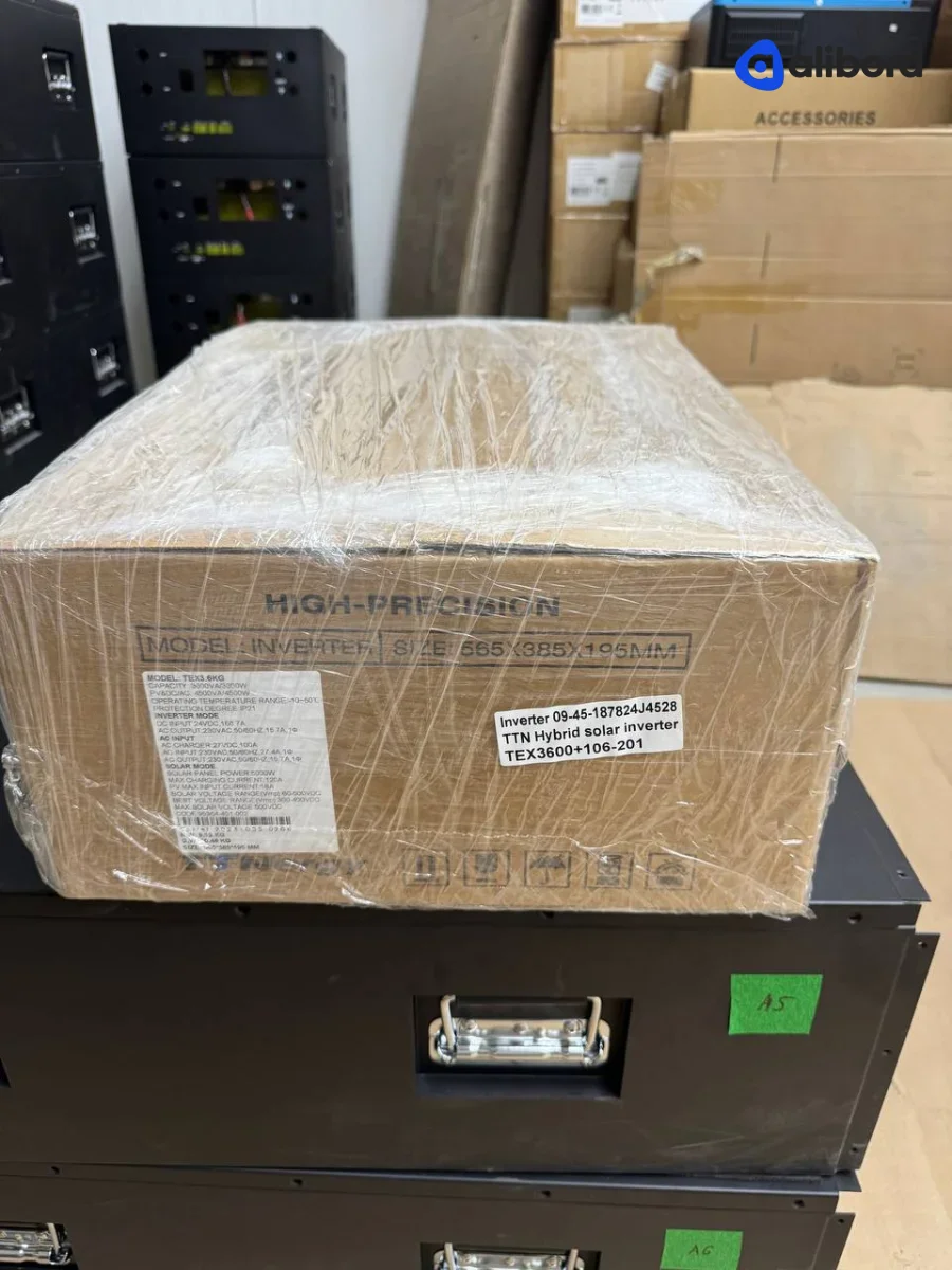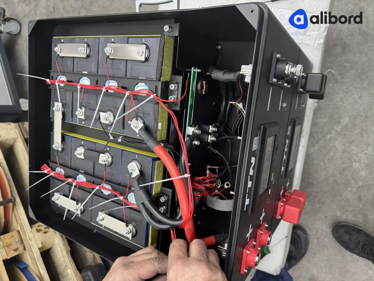 Акумуляторна батарея LiFePO4 промислового призначення напругою 24-48V з вбудованою системою управління. Комплект включає кілька модульних блоків з LCD дисплеями для моніторингу параметрів, червоними клемами підключення та внутрішньою комутаційною панеллю з предохоронителями. Устаткування поставляється в новому або близькому до нового стані, запаковано в захисні картонні коробки. Призначено для використання у системах безперебійного живлення, сонячних станціях та енергосховищах. Фізично товар без видимих пошкоджень корпусу, всі екрани і індикатори в робочому стані.